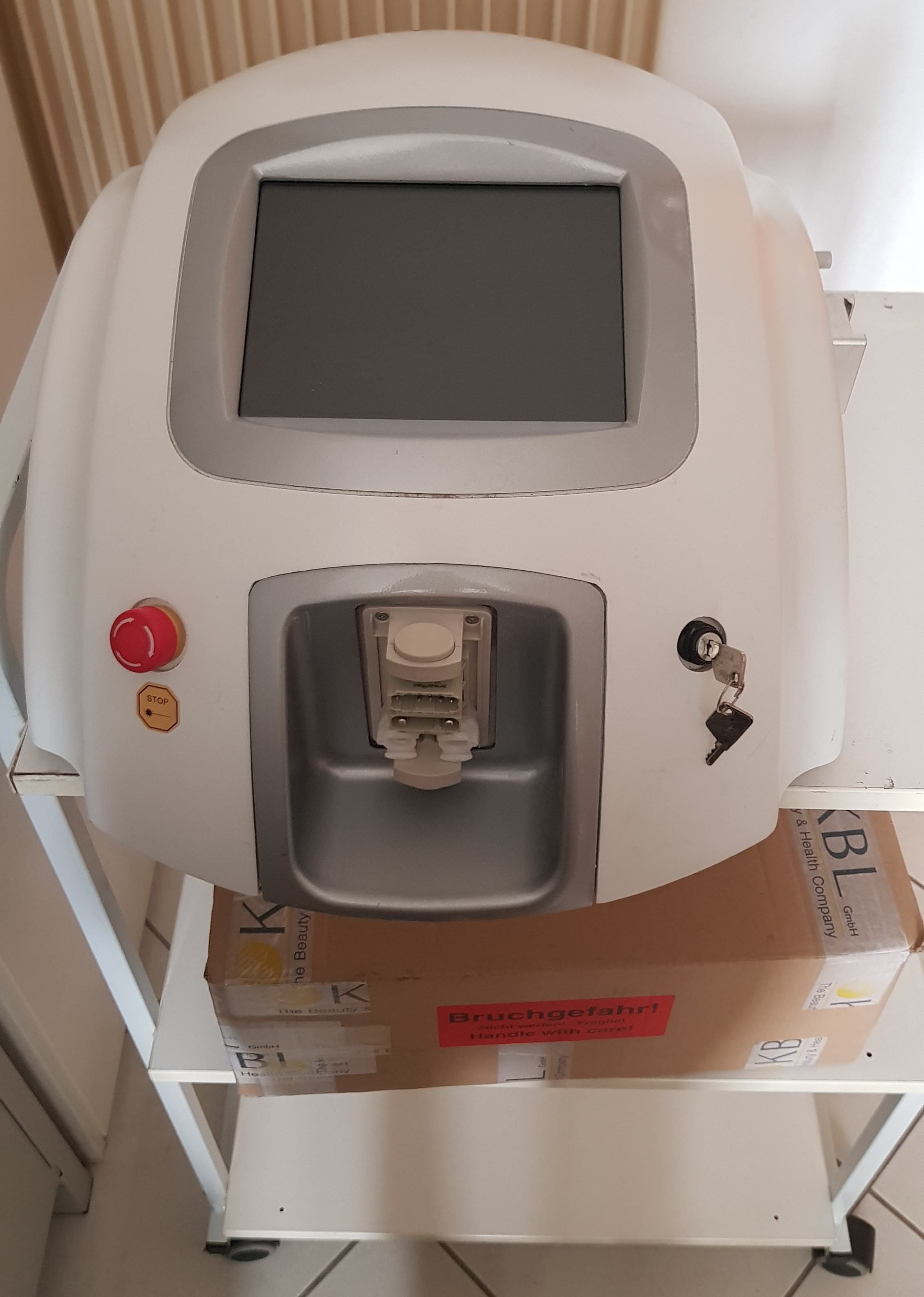 Apparecchio che utilizza un laser diodo con lunghezza d'onda 808nm per trattamenti di epilazione permanente su alcune parti del viso e del corpo.