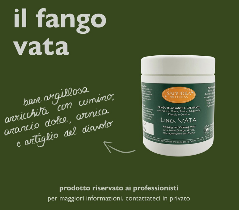 La linea Vata basa i suoi principi sulla filosofia ayurvedica: l’energia Vata è infatti composta dagli elementi di Aria e Spazio e influenza il sistema nervoso, gli organi motori ed è responsabile dell’eliminazione delle scorie. I prodotti di questa linea hanno una funzione rilassante, calmante, decontratturante ed idratante poiché agisce sul piano emozionale, sul sistema nervoso, sulle infiammazioni e sulla cellulite dolorosa.