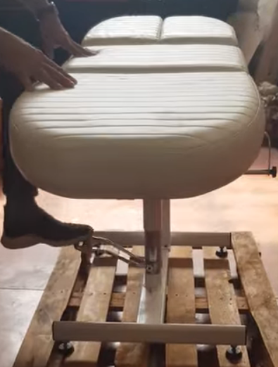 Dotato di pistoni ad aria per regolare l’inclinazione dello schienale e delle singole gambe e di porta rotolo;