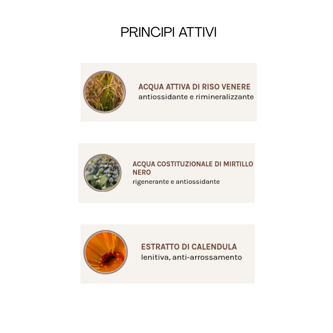 - acqua costituzionale di Mirtillo nero, rigenerante e antiossidante;