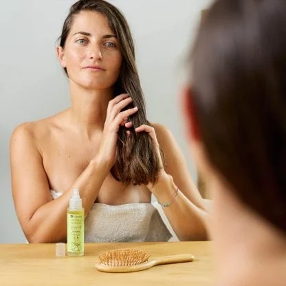 Perfetto da utilizzare come termoprotettore bio per proteggere i capelli durante l'asciugatura con il phon o prima di passare la piastra.