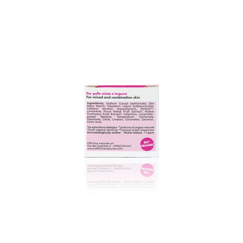 Detergente solido per il viso che purifica la pelle lasciandola luminosa e liscia, senza seccarla grazie agli estratti biologici di Mela e Mora che hanno qualità astringenti.