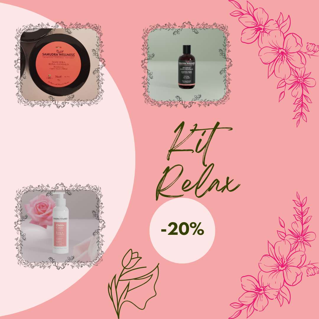 Tags #kit #relax #maschera #capelli #shampoo #fluido #corpo #rosa #sandalo #crema #ristrutturante #idratante #100ml