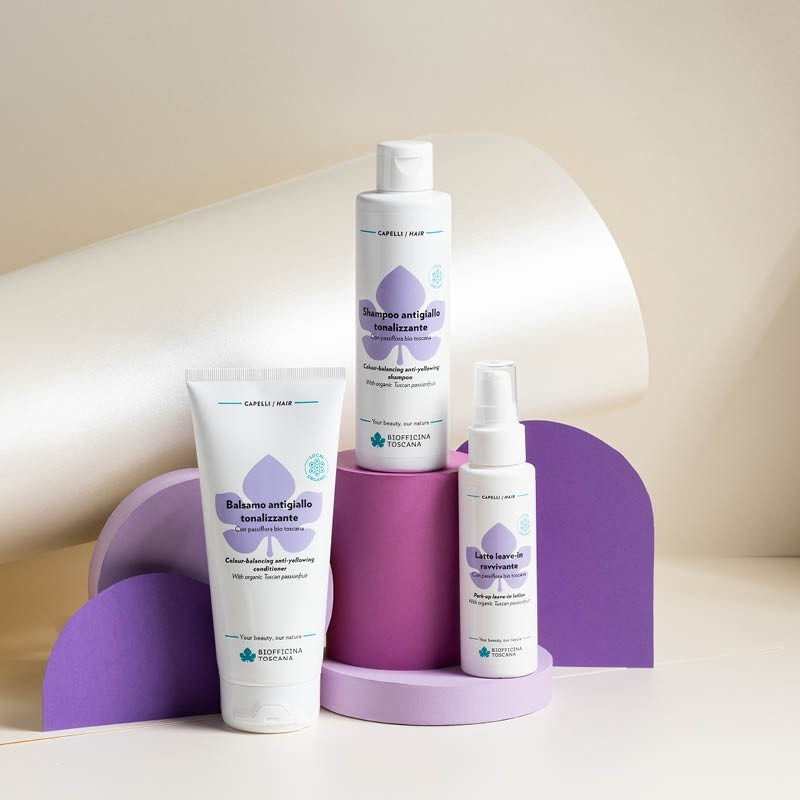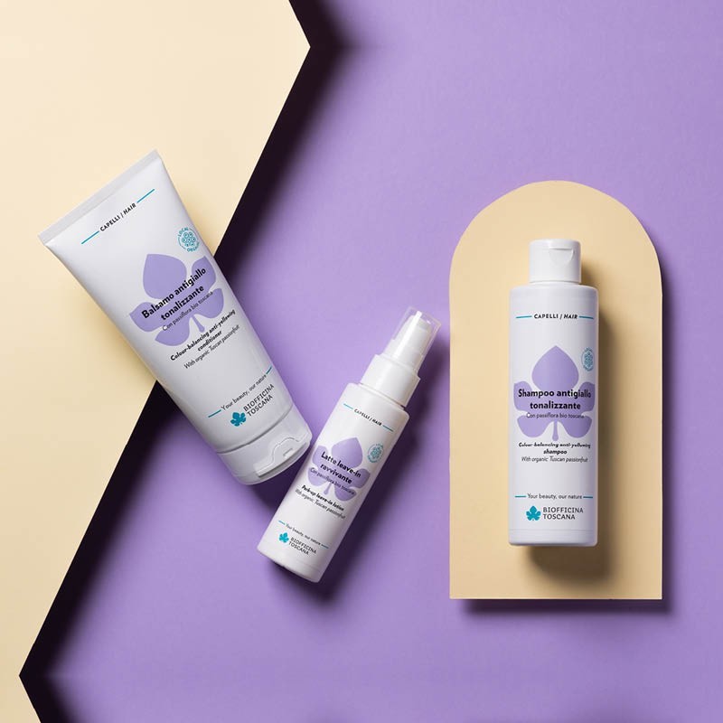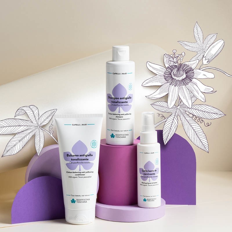 Tags #biofficina #toscana #balsamo #capelli #antigiallo #districante #tonalizzante #pigmentoviola #passiflora #fiordaliso #viola #cheratina #rinforzante #elasticizzante
