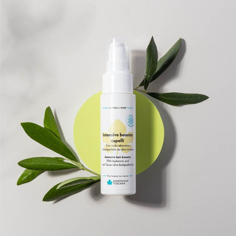 Siero capelli rimpolpante-ricostituente effetto filler con un estratto brevettato, un bioliquefatto da olive bio toscane ad attività antiossidante, che in sinergia con acido ialuronico a tre pesi molecolari, lieviti d’uva ad azione ricostituente, fitocheratina e pantenolo rimpolpa la struttura del capello donando elasticità e corposità. Un concentrato di attivi performanti per capelli visibilmente rivitalizzati già dal primo utilizzo.