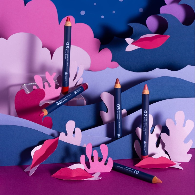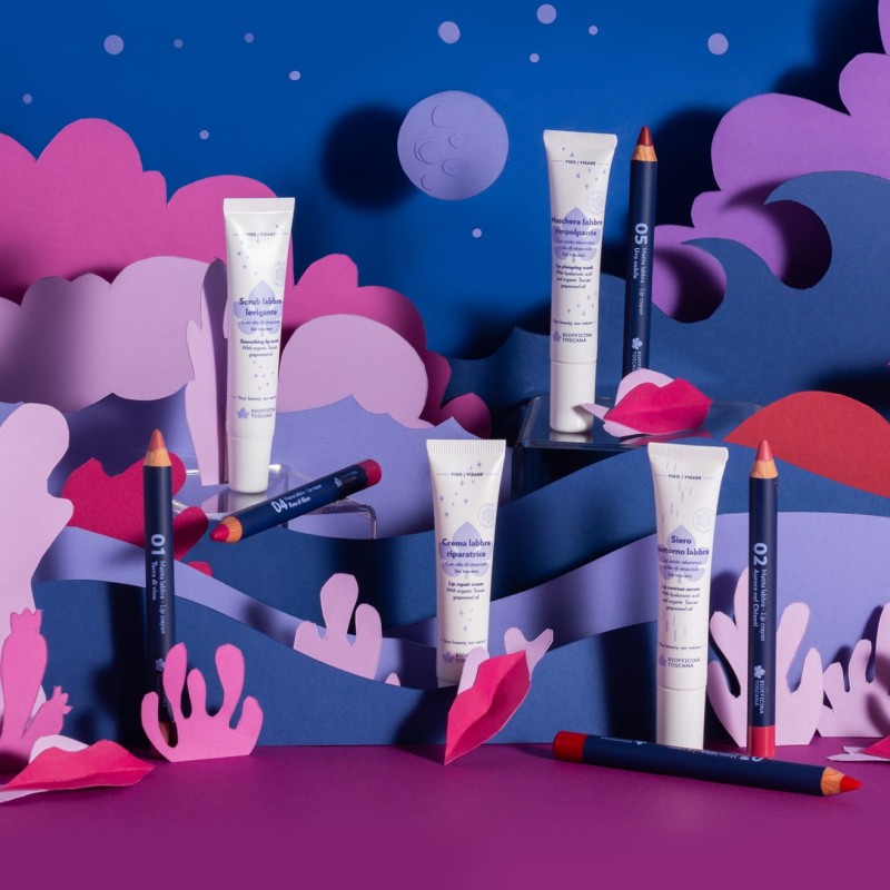 Dedicato a chi desidera labbra curate e colorate, accese da pennellate di colore che richiamano caratteristici elementi naturali della terra Toscana.