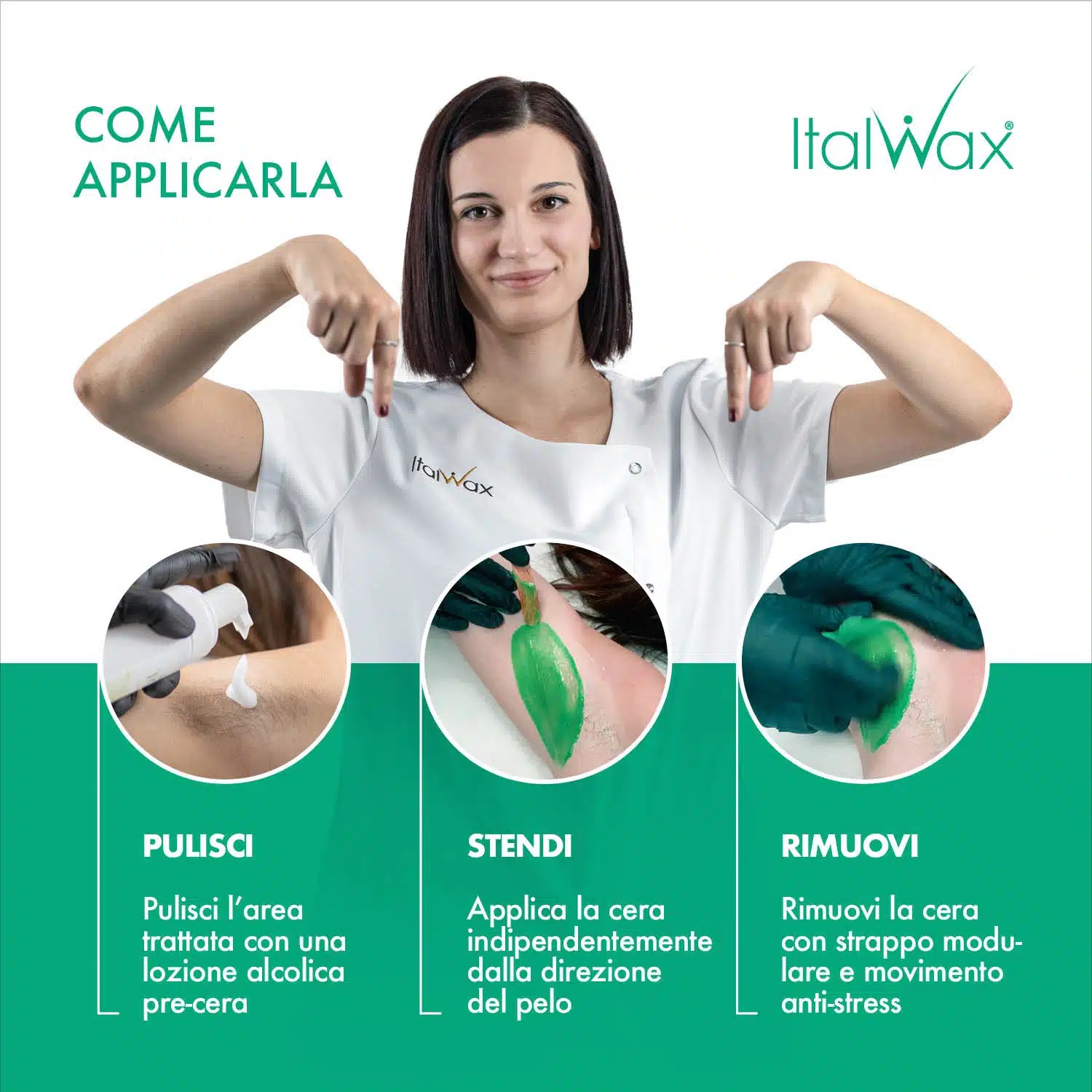 prima di applicare la cera, trattare l’area da depilare con una lozione pre cera Italwax;